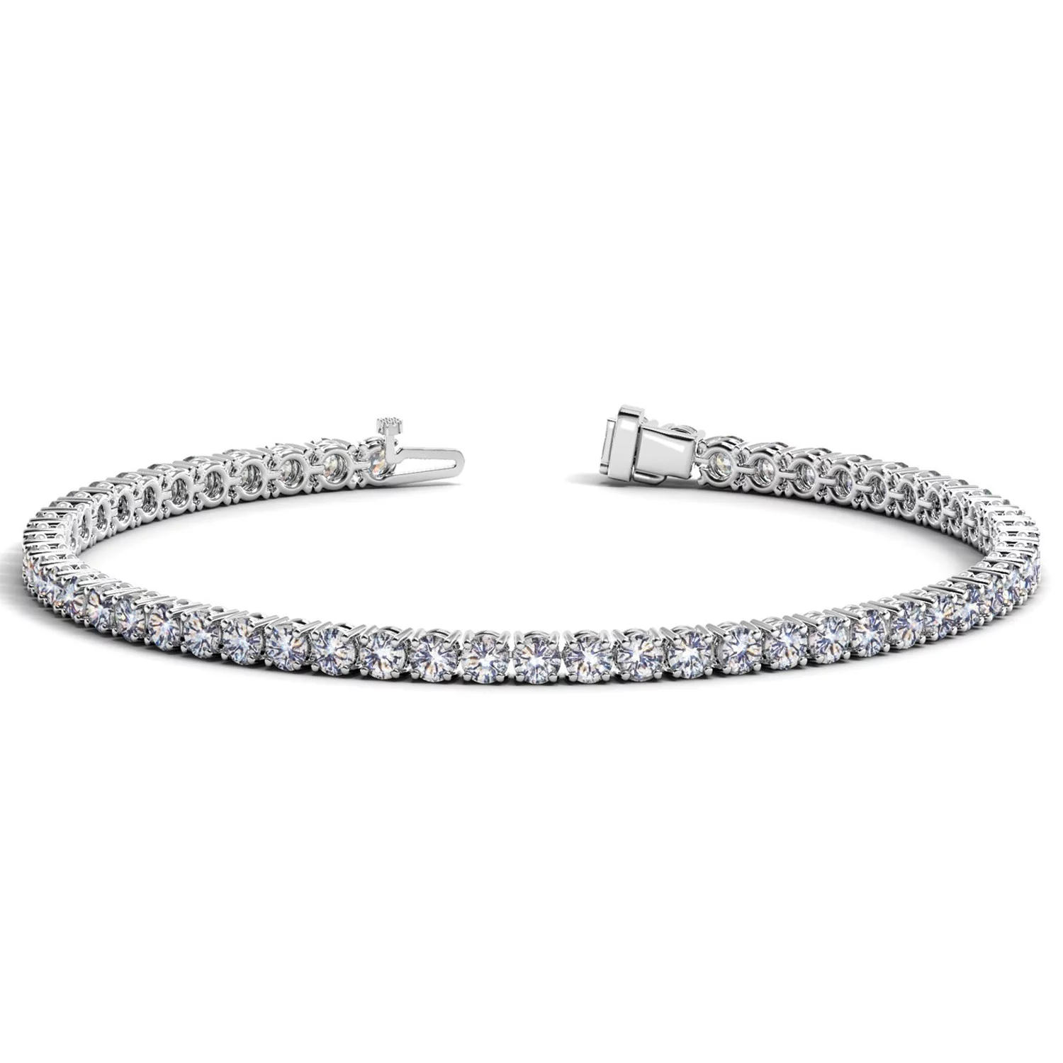 Classic four prong 7 carat total weight diamond tennis bracelet showcasing perfectly matched brilliant round cut lab grown diamonds set in 14k white gold.