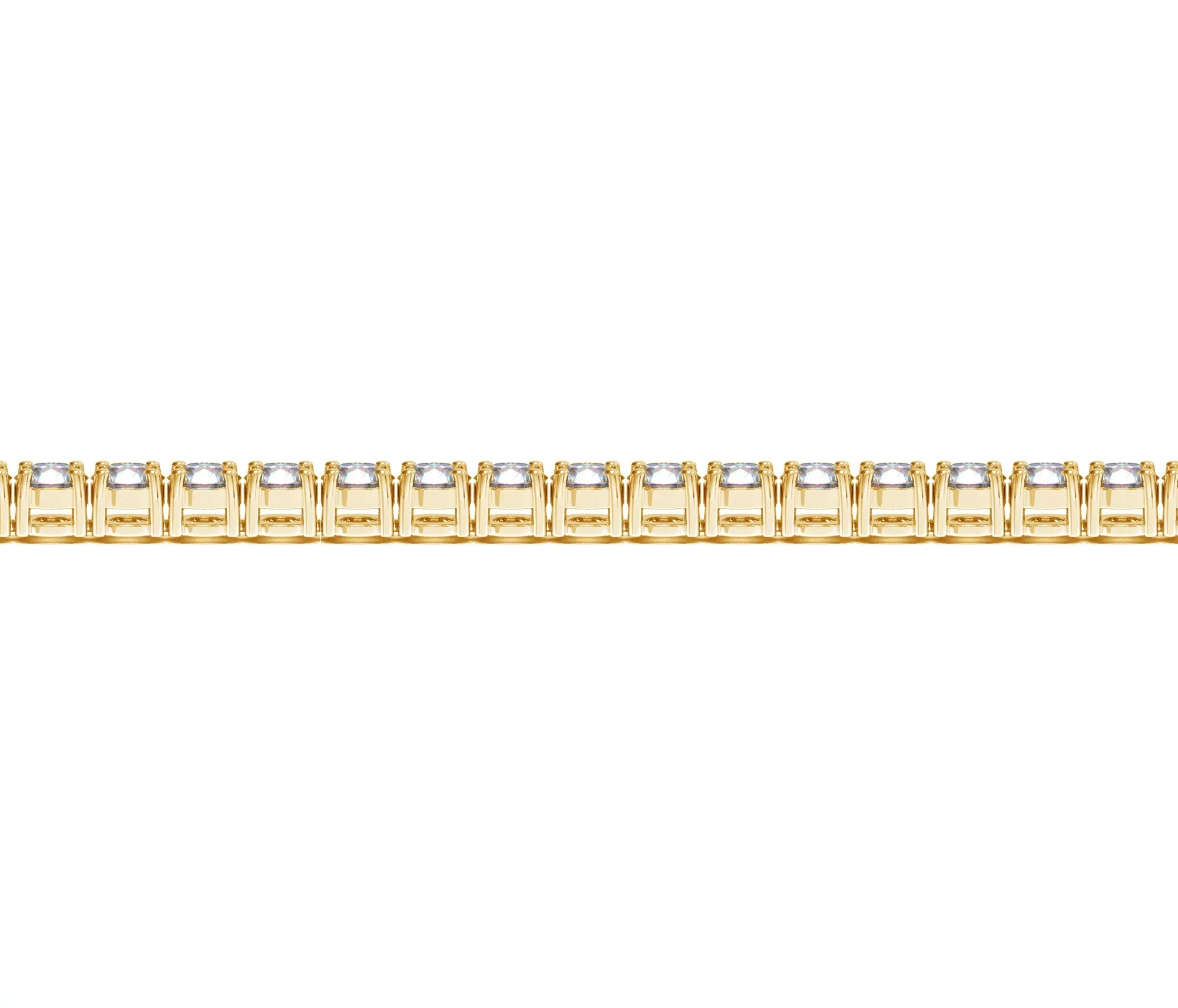 Classic four prong 10 carat total weight diamond tennis bracelet showcasing perfectly matched brilliant round cut lab grown diamonds set in 14k yellow gold.